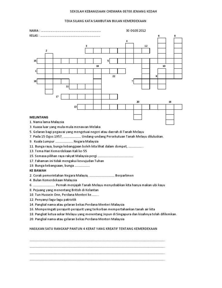 Bermacam Soalan Teka Silang Kata Bulan Kemerdekaan Yang Sangat Penting Untuk Para Murid Download Contoh Resume Cover Letter Curriculum Vitae Terbaik
