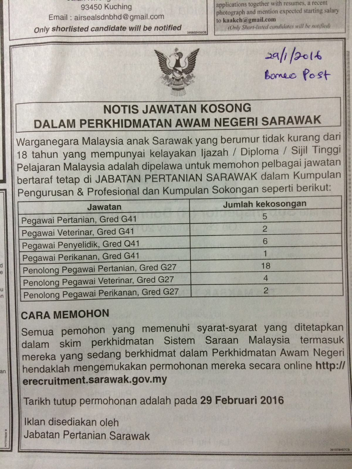 Jawatan Kosong Di Jabatan Pertanian Sarawak 29 Februari 2016 Appjawatan Malaysia