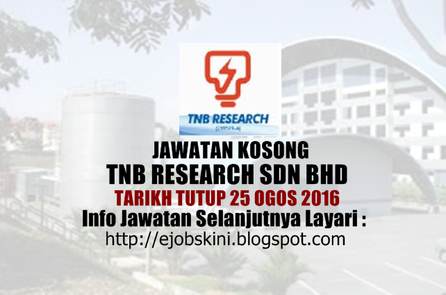 Jawatan Kosong Tnb Research Sdn Bhd 25 Ogos 2016