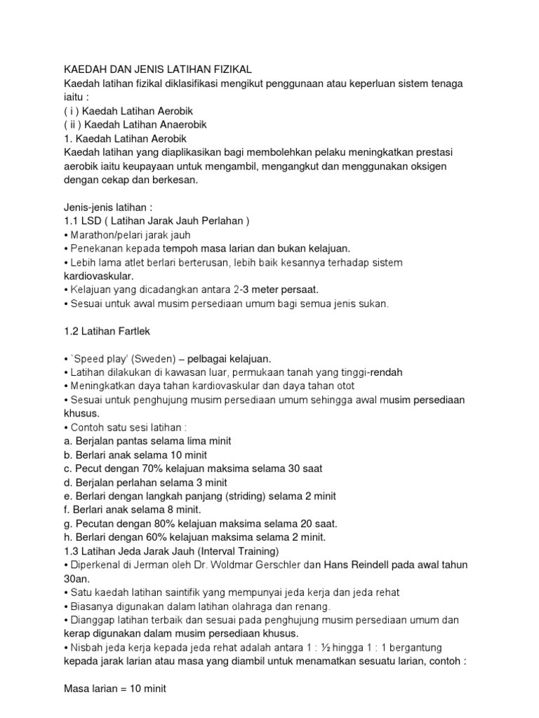 Jenis Jenis Latihan Kaedah Kecergasan Fizikal