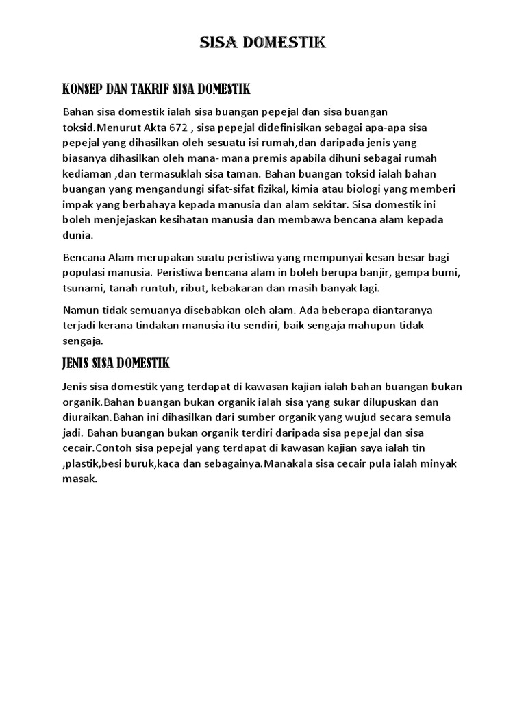 Sisa Sisa Domestik 2019 Docx Bahan Sisa Domestik Ialah Sisa Buangan Pepejal Dan Sisa Buangan Toksid Menurut Akta 672 Sisa Pepejal Didefinisikan Course Hero