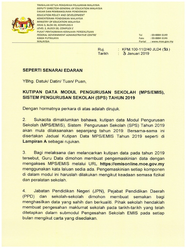 Surat Pekeliling Kutipan Data Emis 2019
