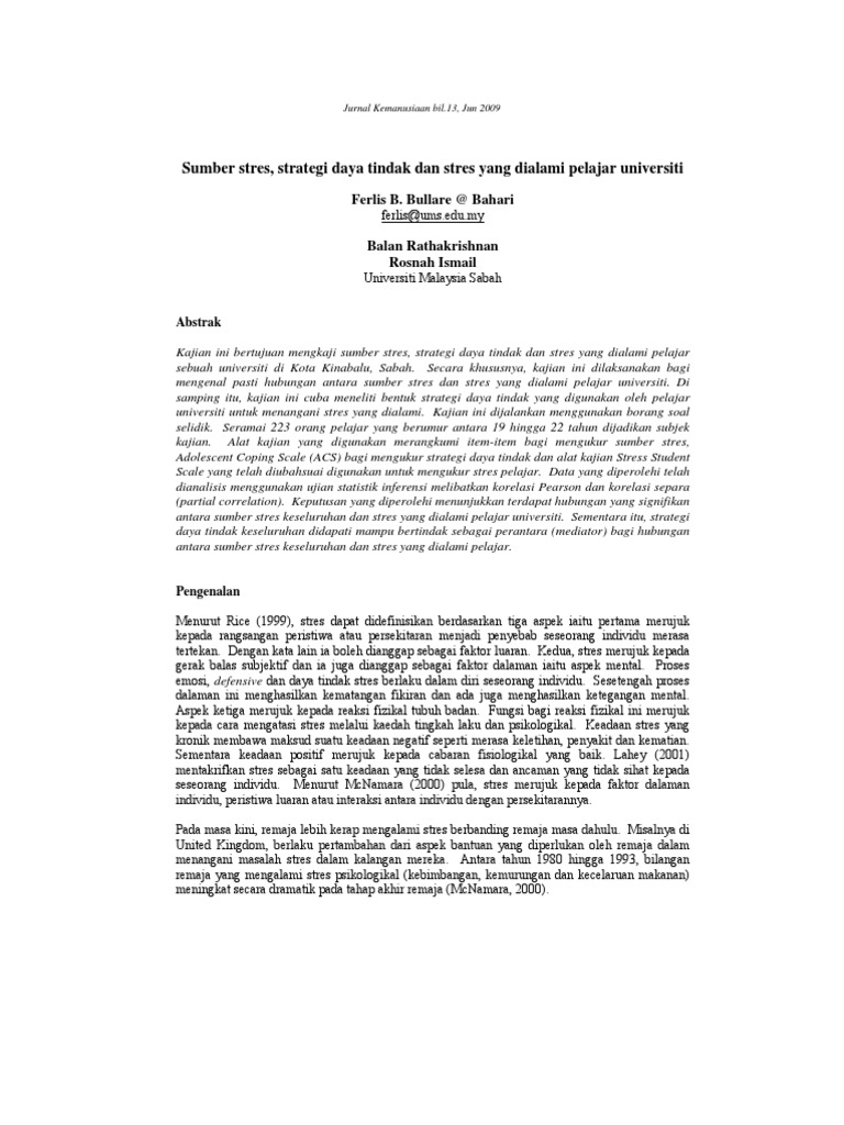 Pdf Sumber Stres Strategi Daya Tindak Dan Stres Yang Dialami Pelajar Universiti