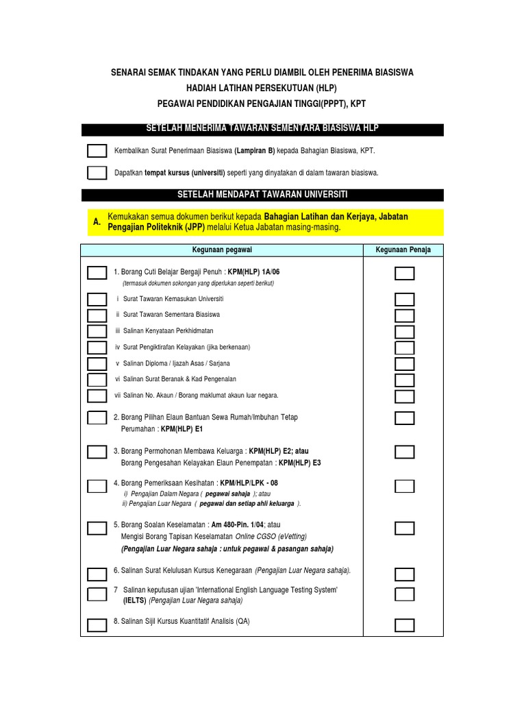 Borang Permohonan Cuti Belajar Bergaji Penuh Bagi Tawaran Hlp Pppt Dalam Negara