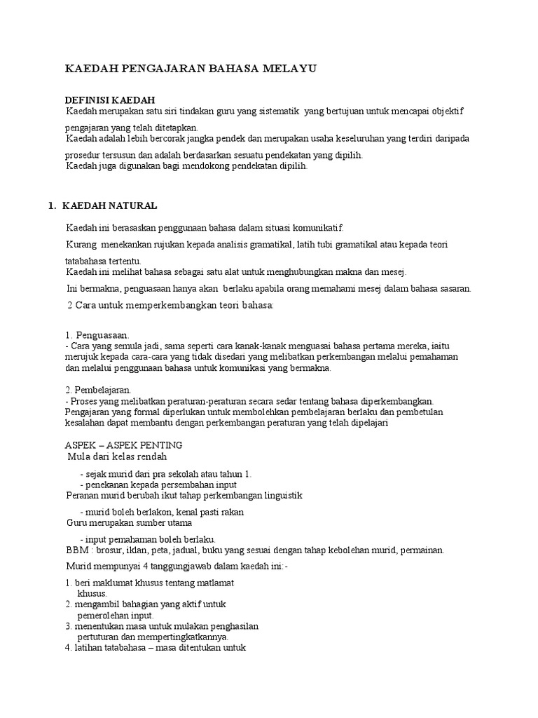 Pdf Kaedah Pengajaran Bahasa Melayu Valentine B Jenny Academia Edu
