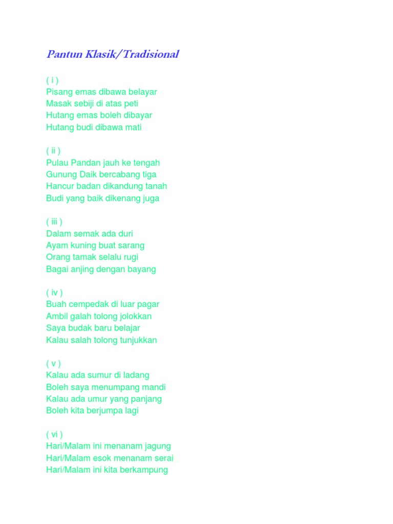 Pantun Tradisional Pdf