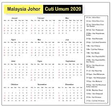 Johor Cuti Umum Kalendar 2020