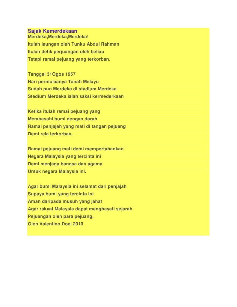 Koleksi Sajak Sajak Merdeka Smk Toh Johan Trong Perak