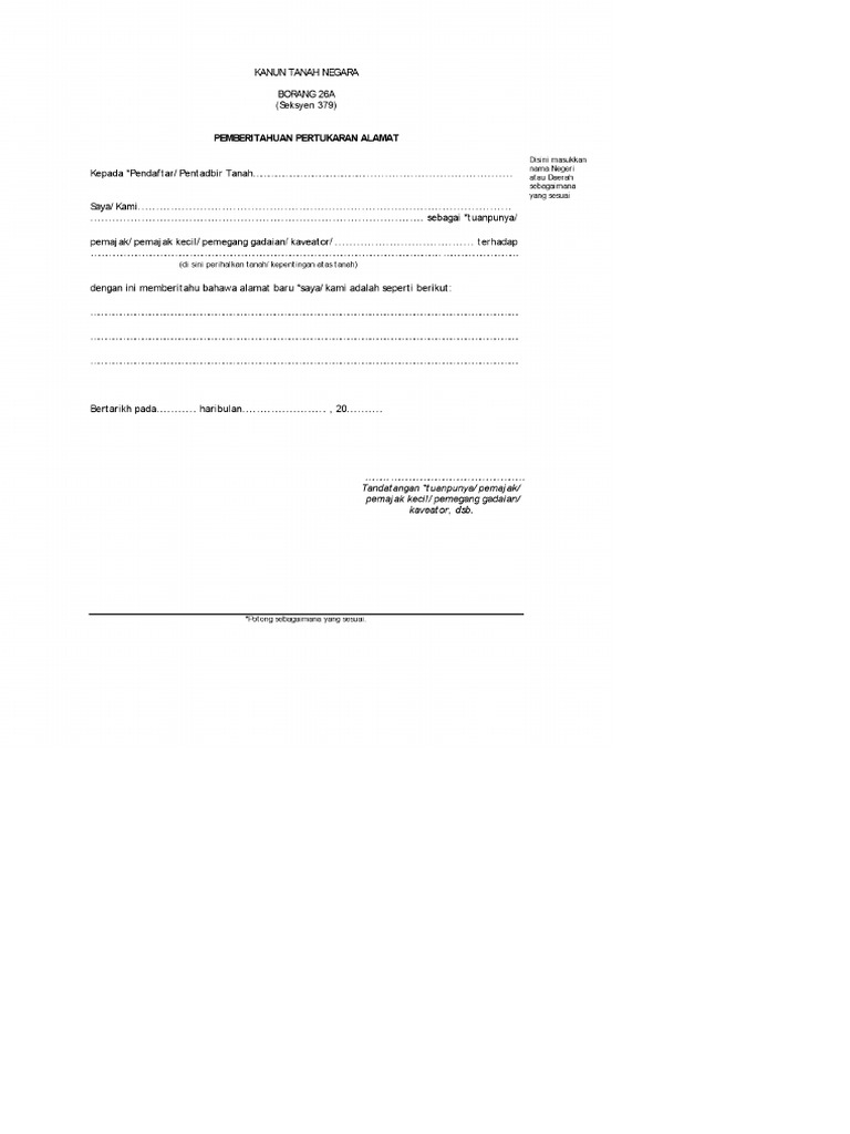 Kanun Tanah Negara Borang26a