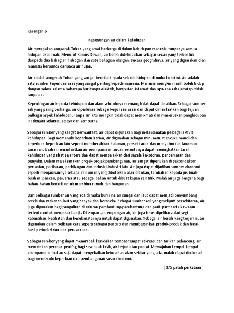 Karangan Kepentingan Air Dalam Kehidupan