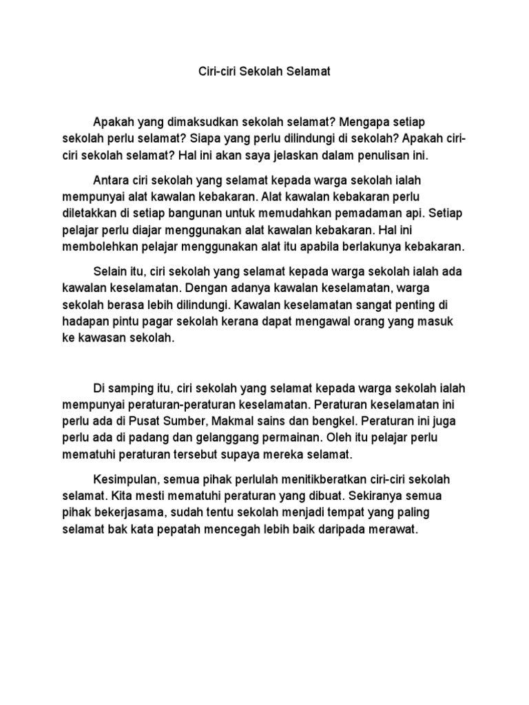 Karangan A Ciri Sekolah Selamat
