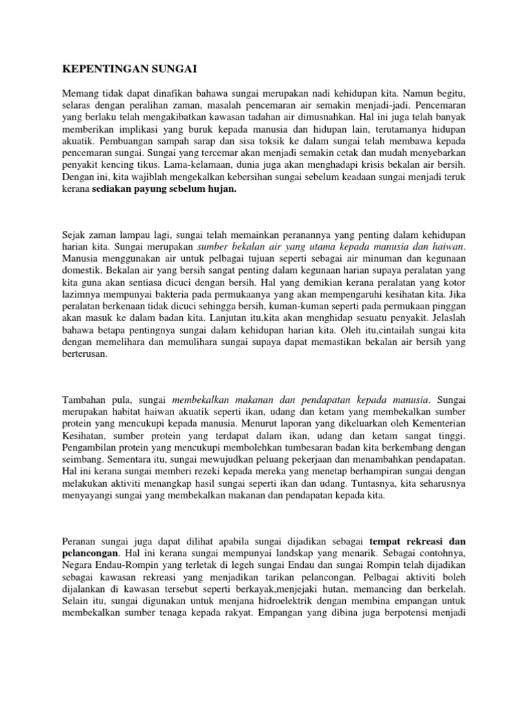 Karangan Spm Kepentingan Sungai