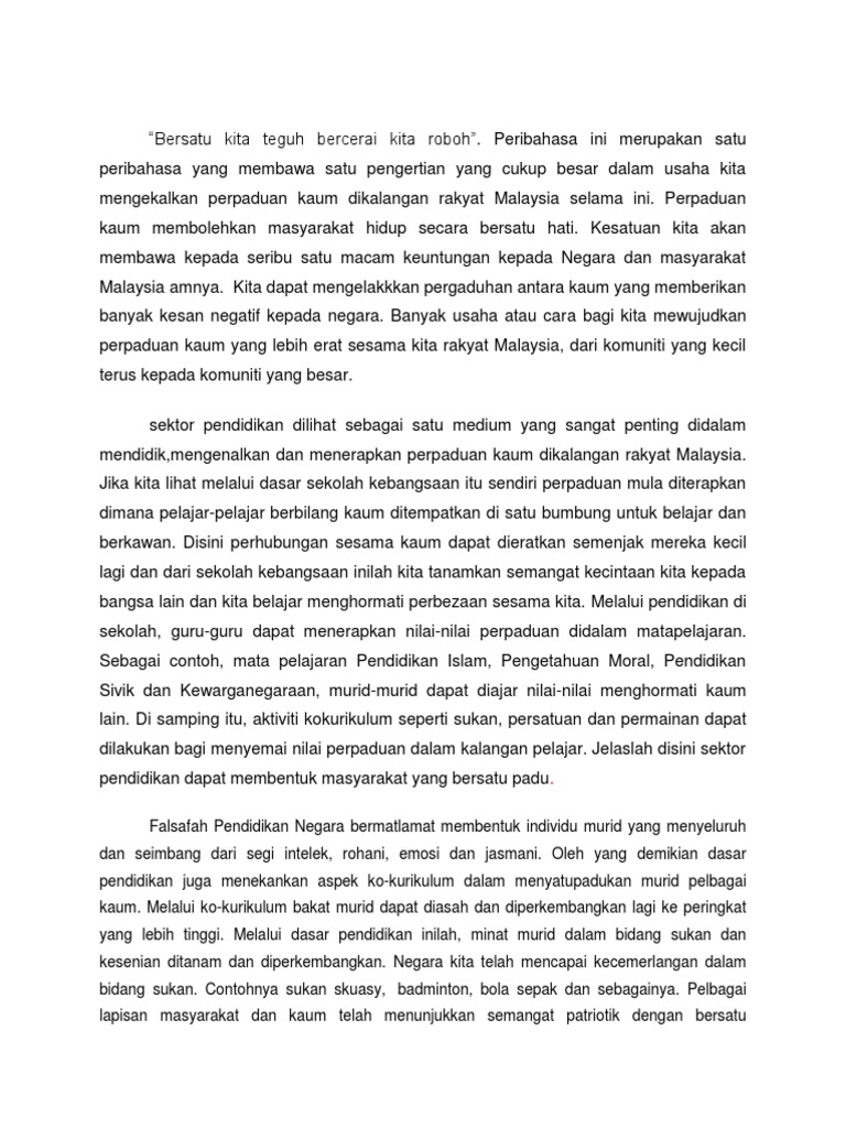 Bersatu Teguh Bercerai Roboh Contoh Karangan