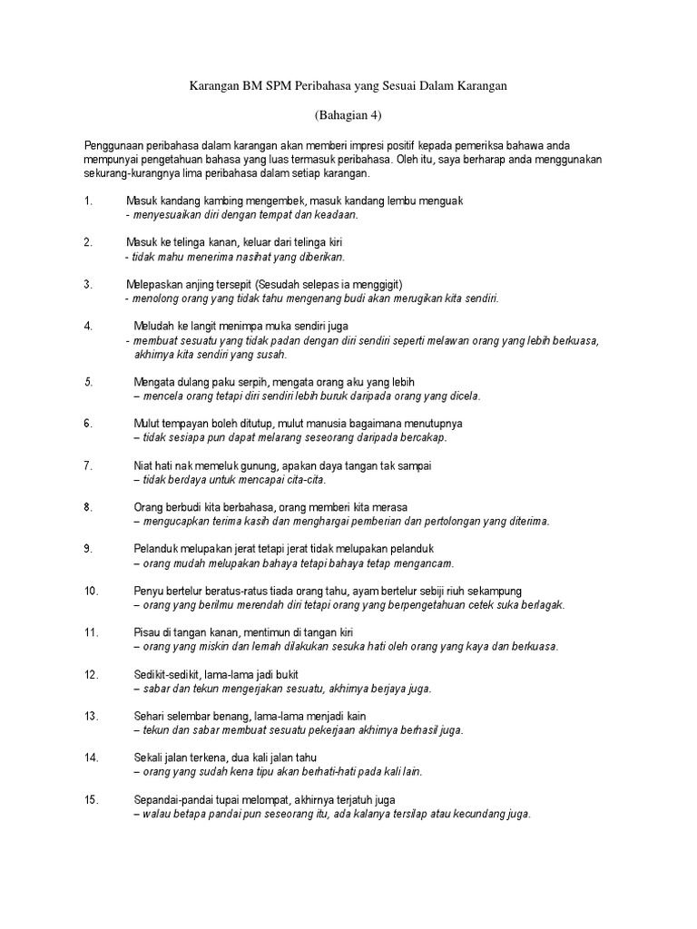Karangan Bm Spm Peribahasa Yang Sesuai Dalam Karangan