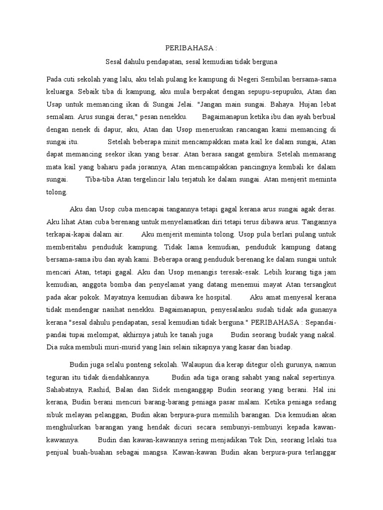 Peribahasa Karangan Sesal Dulu Pendapatan Sesal Kemudian Tiada Berguna