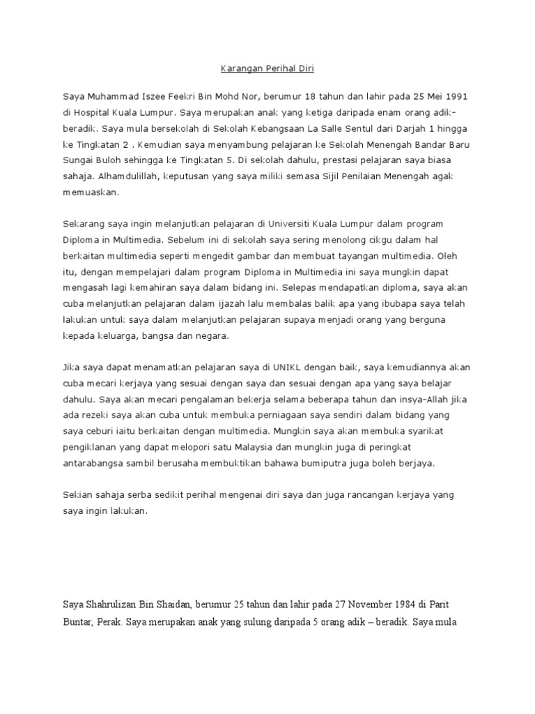 Contoh Karangan Perihal Diri Perancangan Dan Kerjaya Pdf Document