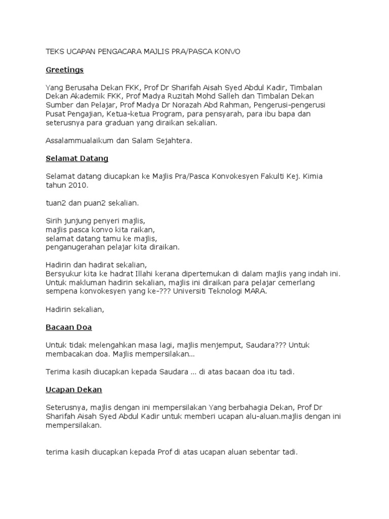 Teks Ucapan Pengacara Majlis Pra Konvo