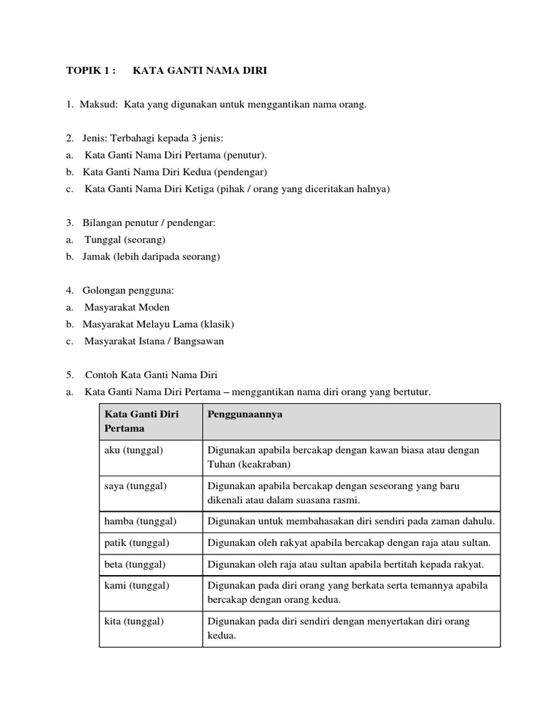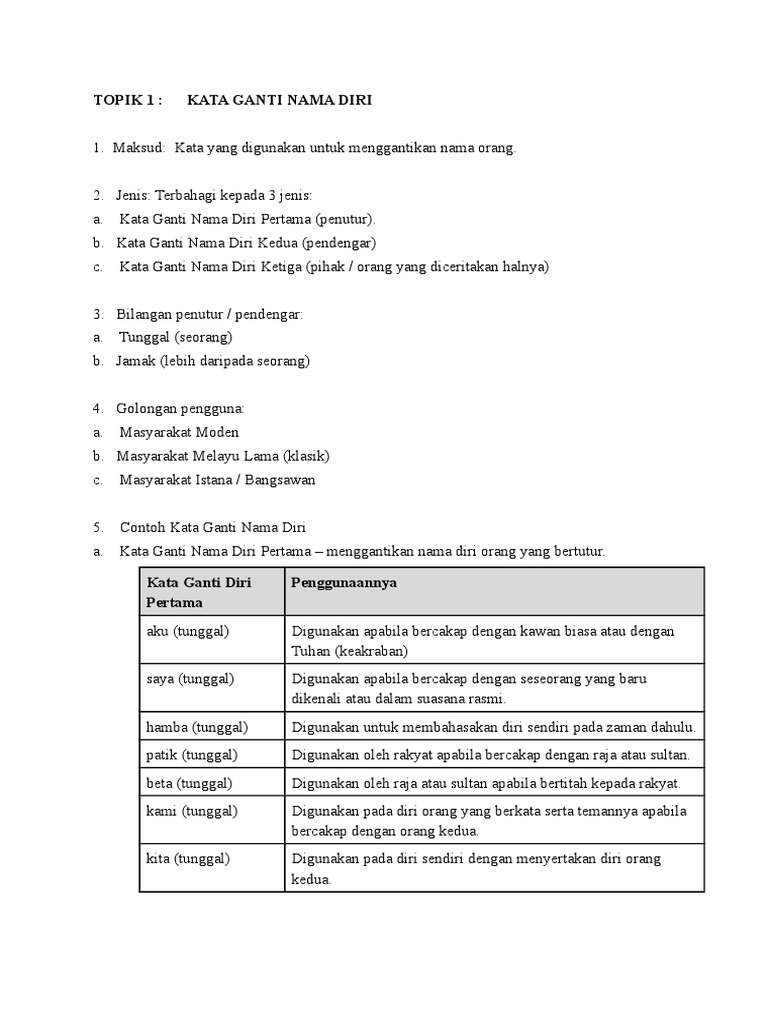 Topik 1 Kata Ganti Nama Diri