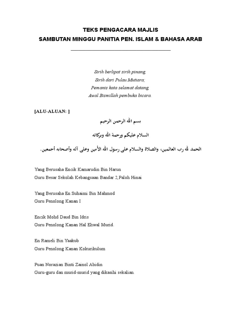Contoh Teks Pengacara Majlis Bahasa Arab