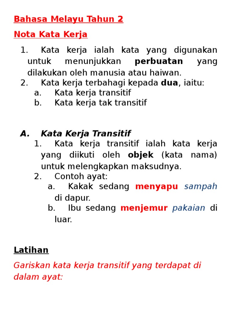 Latihan 1 Kata Nama Latihan 2 Kata Ganti Nama Latihan 3 Kata Kerja Transitif Latihan 4 Kata Kerja Tak Latihan Bahasa Melayu Belajar