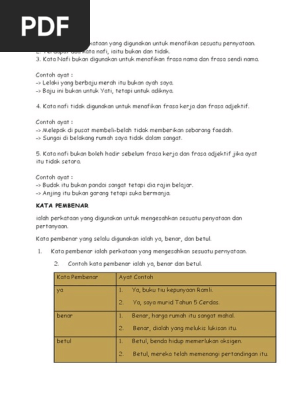 Latihan Kata Nafi Dan Kata Pembenar Tahun 5