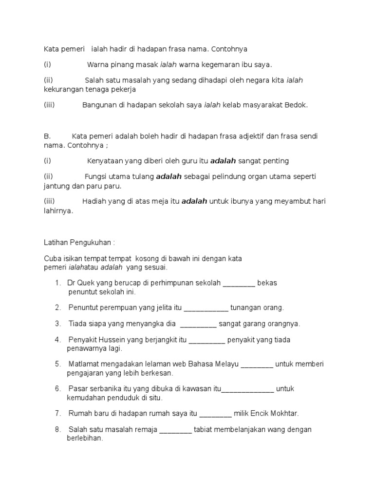 Latihan Tatabahasa Ialah Dan Adalah Docx