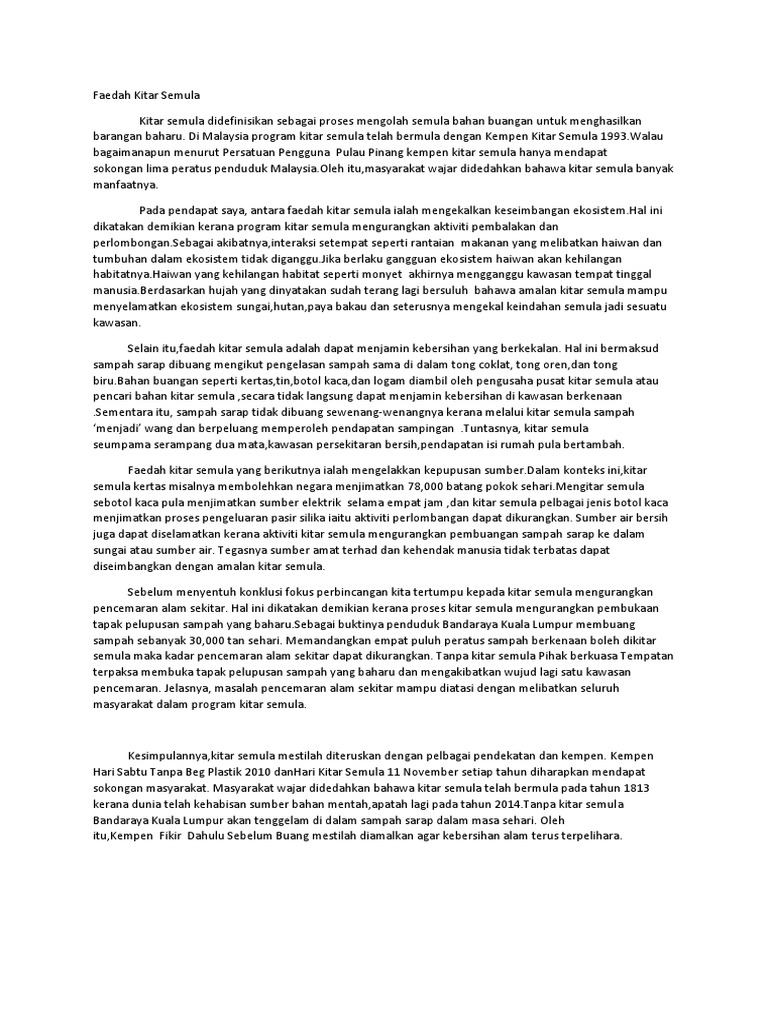 Contoh Karangan Pmr Kebaikan Kitar Semula