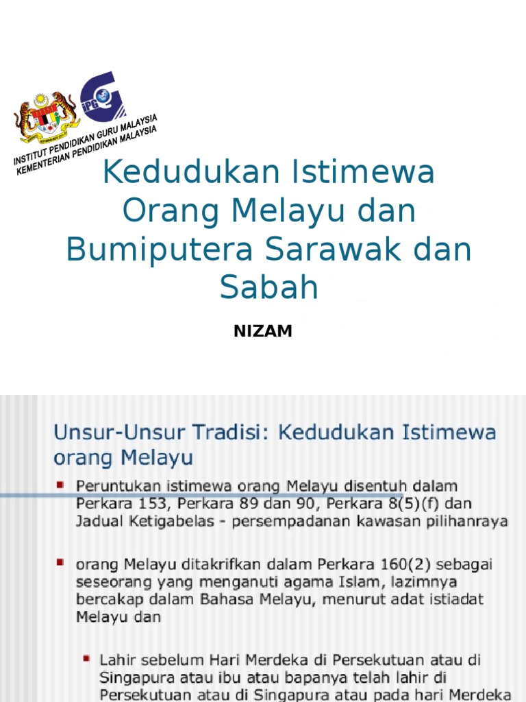 Kedudukan Istimewa Orang Melayu Dan Bumiputera Sarawak Dan Ppt