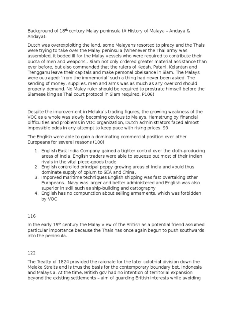 Background Of 18th Century Malay Peninsula Malaysia Thailand