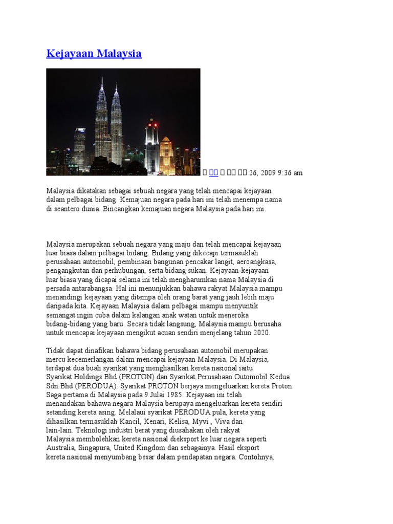 Kejayaan Malaysia Dalam Pelbagai Bidang Esei Spm Stpm