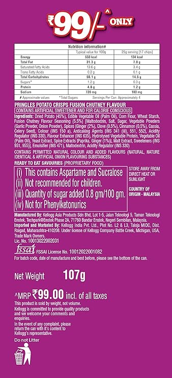 Kellogg S Pringles Fusion Chutney 110g Amazon In Amazon Pantry
