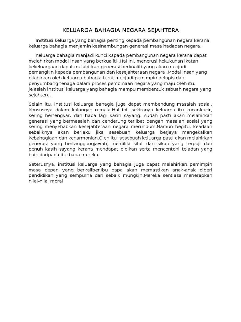 Doc Kumpulan 4 Keluarga Bahagia Negara Sejahtera Haraesha Pentayah Academia Edu