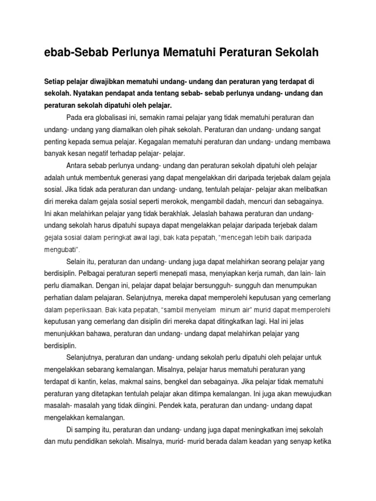 Contoh Karangan Bahagian A Kepentingan Peraturan Di Sekolah