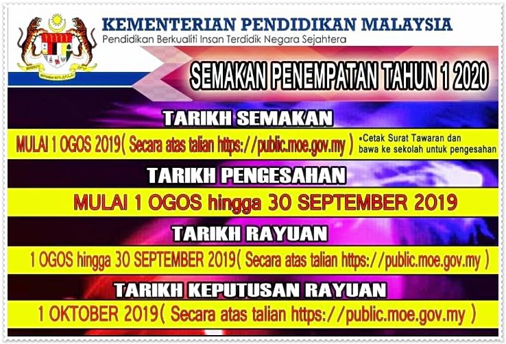 Semakan Keputusan Permohonan Murid Tahun 1 2019 Online Cute766