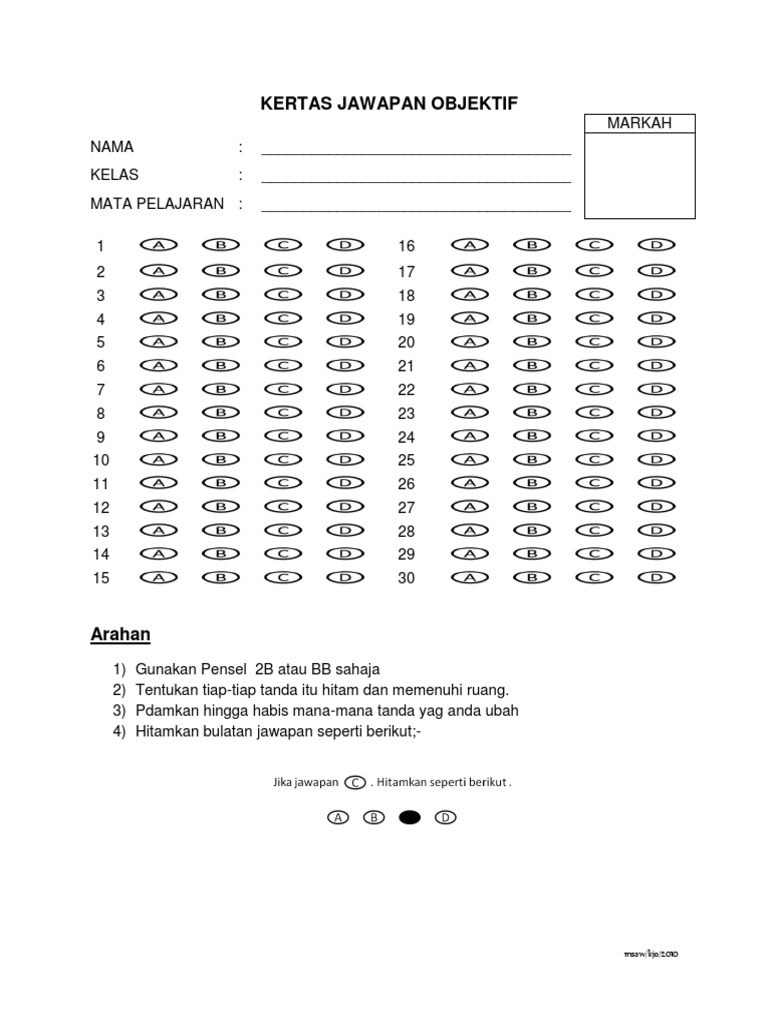 Kertas Jawapan Objektif Pdf Document