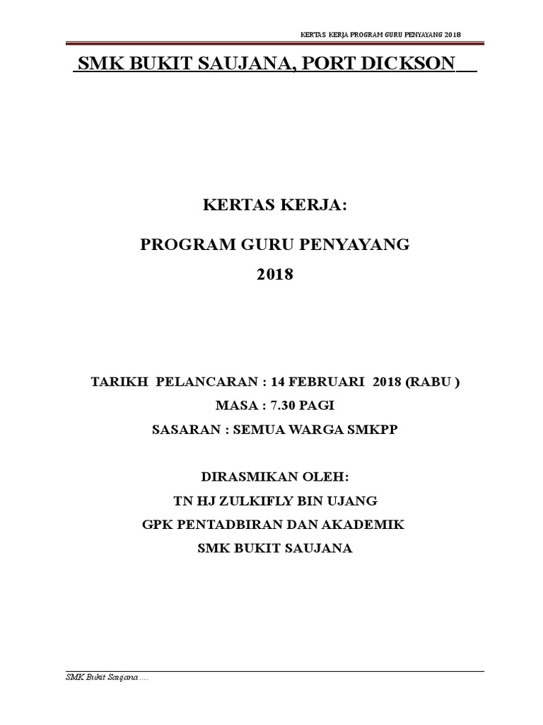 Doc Kertas Kerja Majlis Pelancaran Program Sekolah Penyayang Sekolah Kebangsaan Kuala Dungun 2015 Wan Is Academia Edu