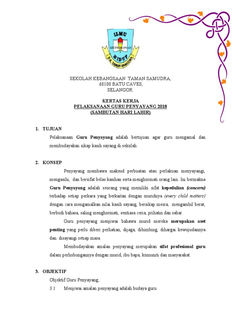 Kertas Kerja Guru Penyayang 2018 Sktsa