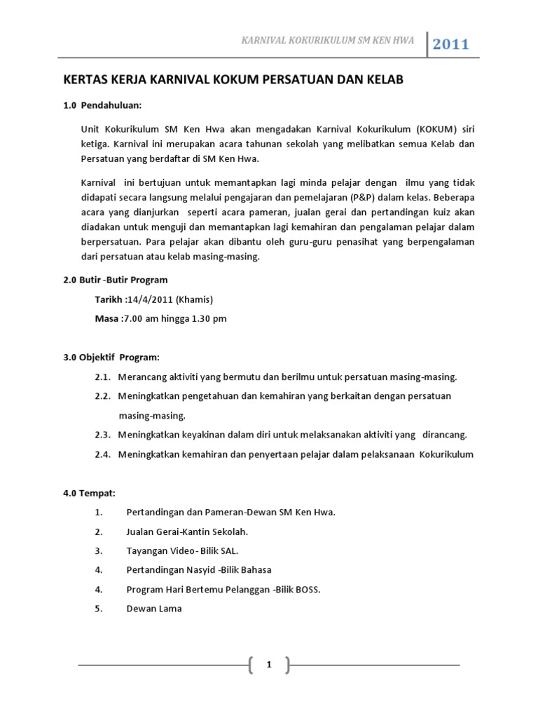 Kertas Kerja Karnival Kokum Persatuan Dan Kelab