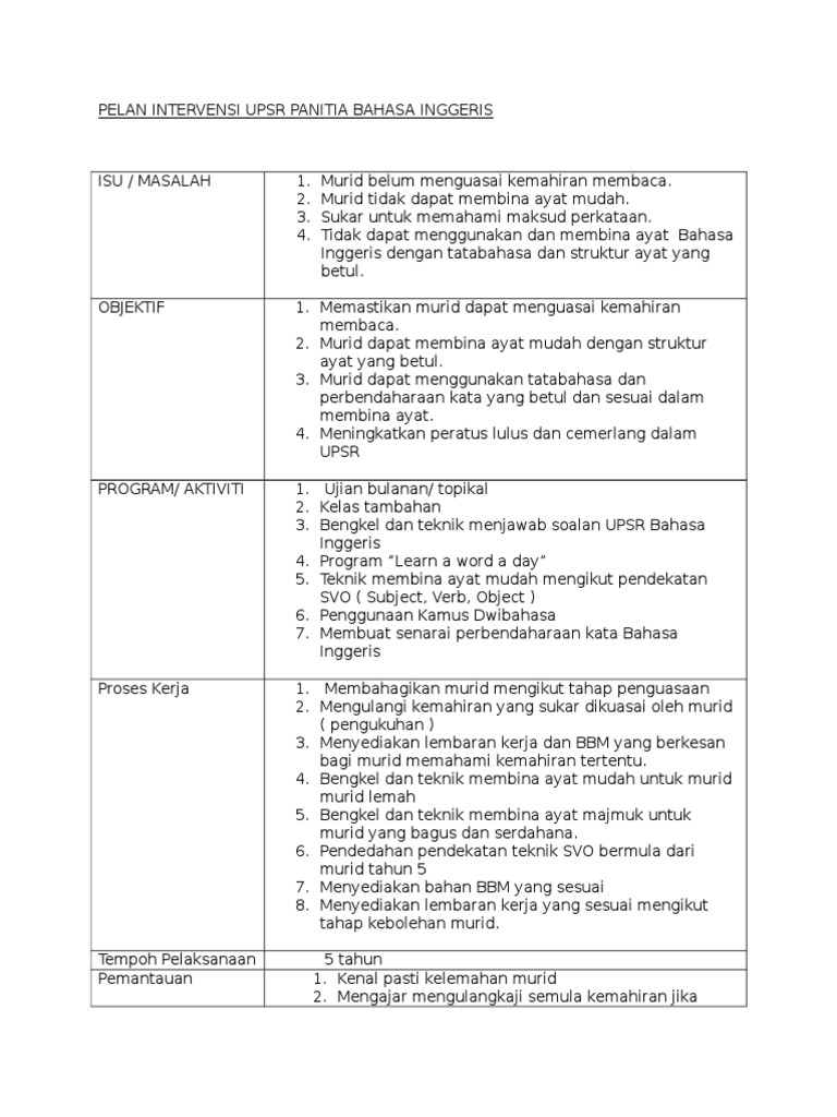 Contoh Pelan Intervensi Bahasa Inggeris Tahun 6 Raihan Jalaludin S Blog