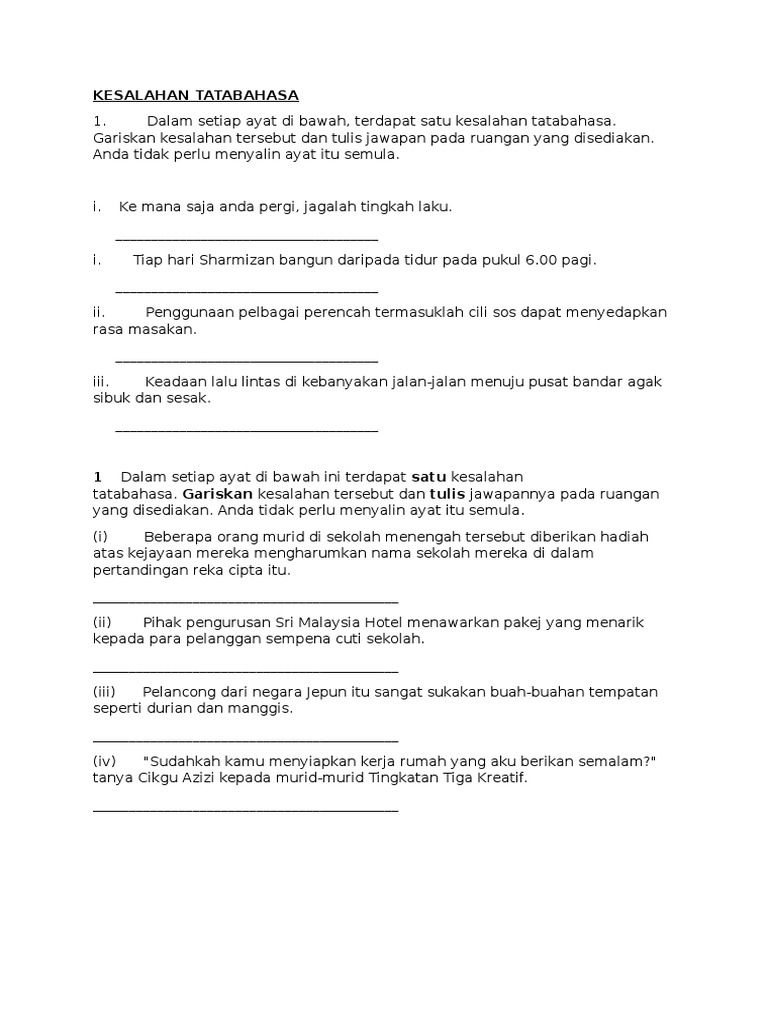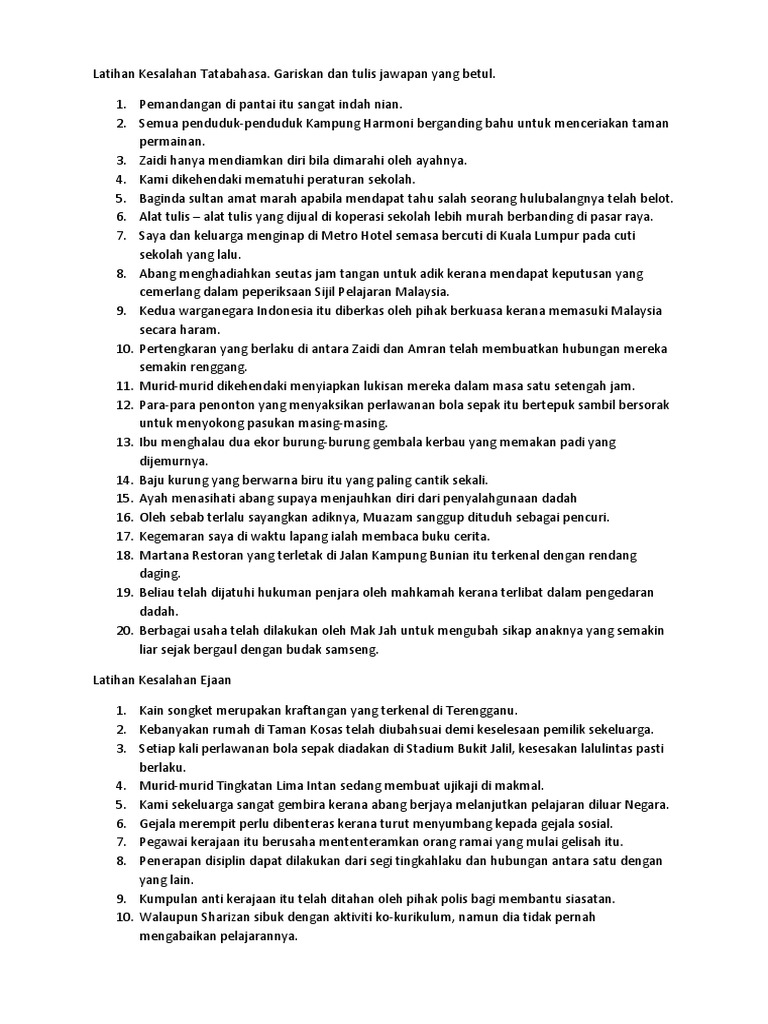 Latihan Kesalahan Tatabahasa