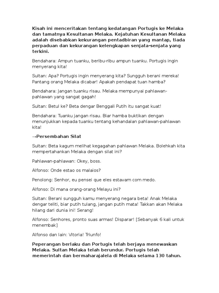 Kisah Ini Menceritakan Tentang Kedatangan Portugis Ke Melaka Dan Tamatnya Kesultanan Melaka
