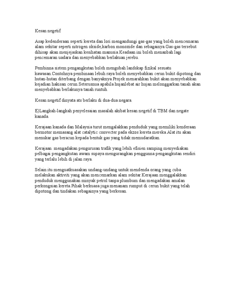 Kesan Negatif Akibat Perkembangan Sistem Pengangkutan Terhadap Alam Sekitar