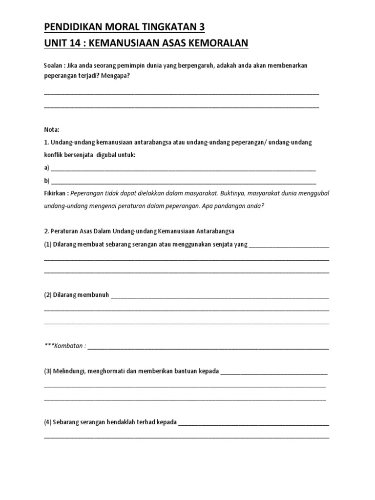 Rph Lengkap P Moral Tingkatan 3 4 5 Undang Undang Kemanusiaan Antarabangsa