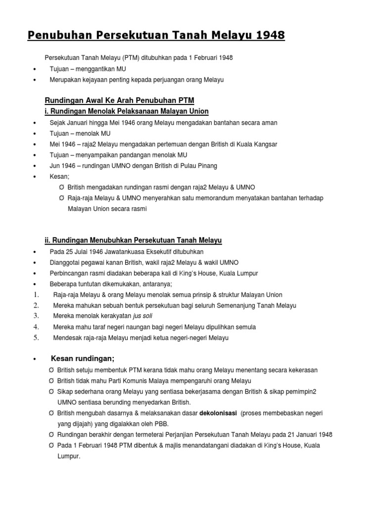 Penubuhan Persekutuan Tanah Melayu 1948 Docx