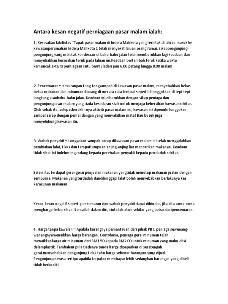 Antara Kesan Negatif Perniagaan Pasar Malam Ialah