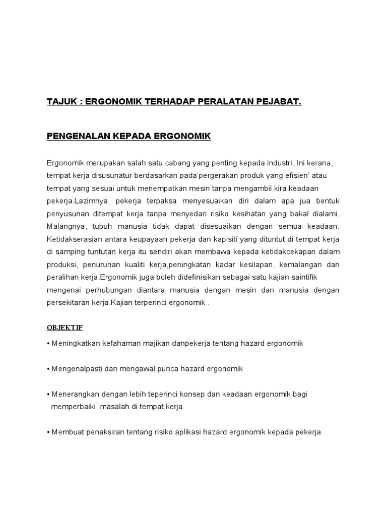 Ergonomik Keselamatan Dan Kesihatan Pekerjaan