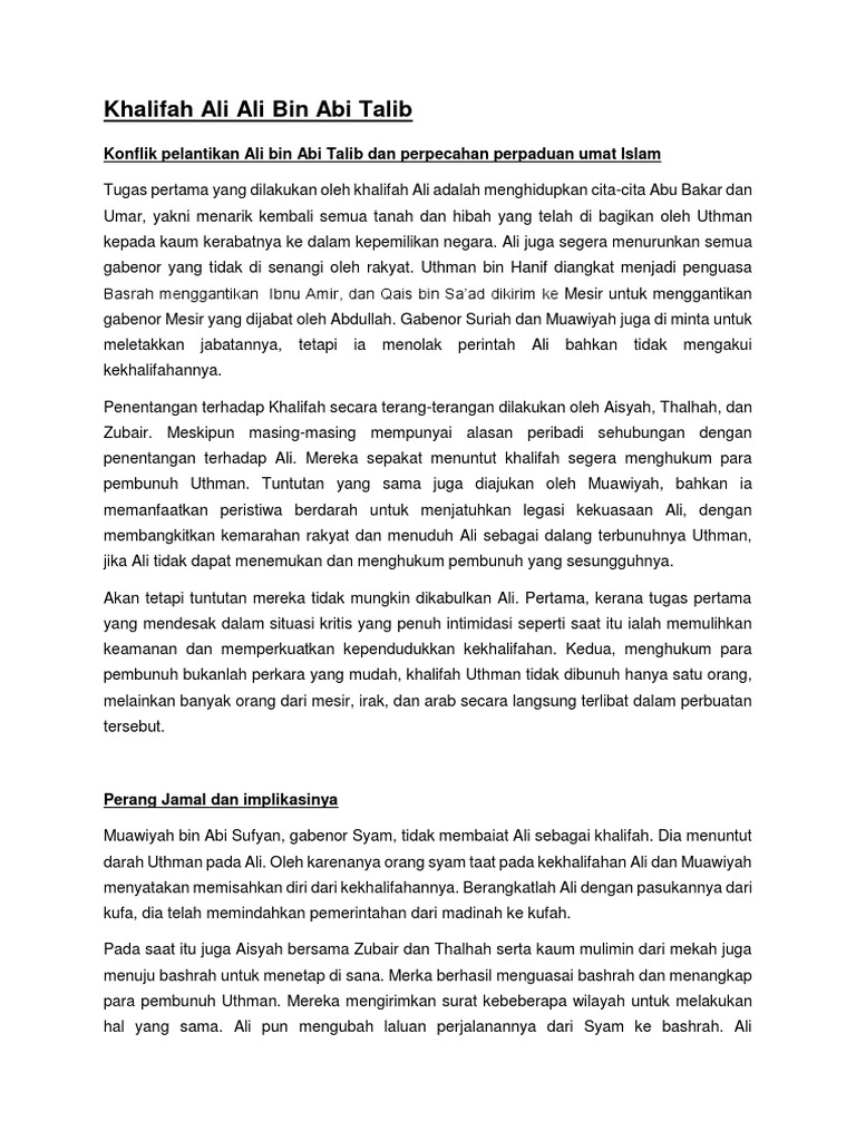 Khulafa Ar Rasyidin Khalifah Ali Bin Abi Talib