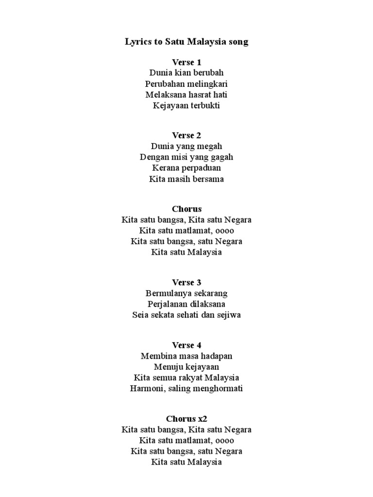 Satu Malaysia Song Lyrics English Translation One Malaysia Sazzadinfo Com